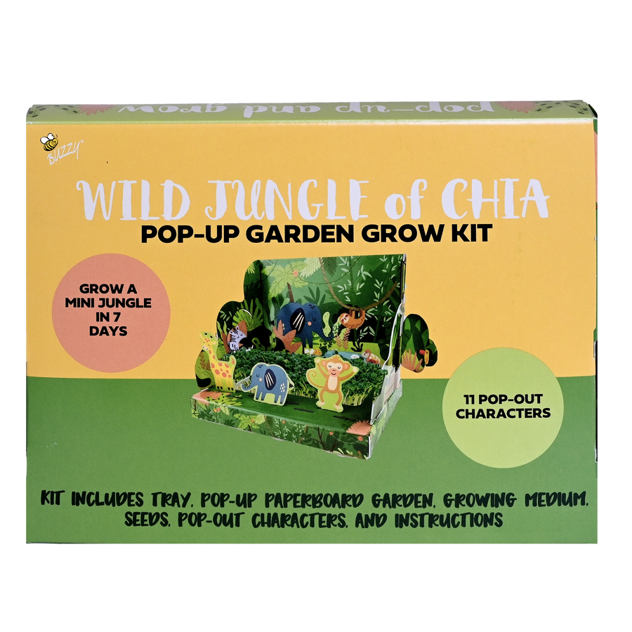 Grow your own enchanted forest with our Wild Jungle Chia Pop-Up Garden Grow Kit. This playful set includes everything kids need to create and grow their own vibrant chia-filled habitat, complete with 11 pop-out jungle characters to arrange and explore. Simply plant the seeds, add water and sunlight, and watch your wild scene come to life.