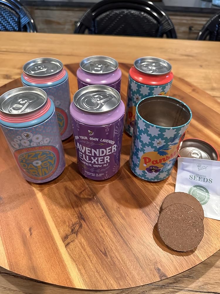 Bring color, charm, and a little whimsy to your space with our Soda Can Grow Kit Set of 6 - a playful collection that turns everyday spaces into mini gardens. Each kit comes in a vibrant, printed soda-can style tin with a removable top, making it easy and fun to plant directly inside the can. Perfect for desks, windowsills, shelves, or sharing with friends.