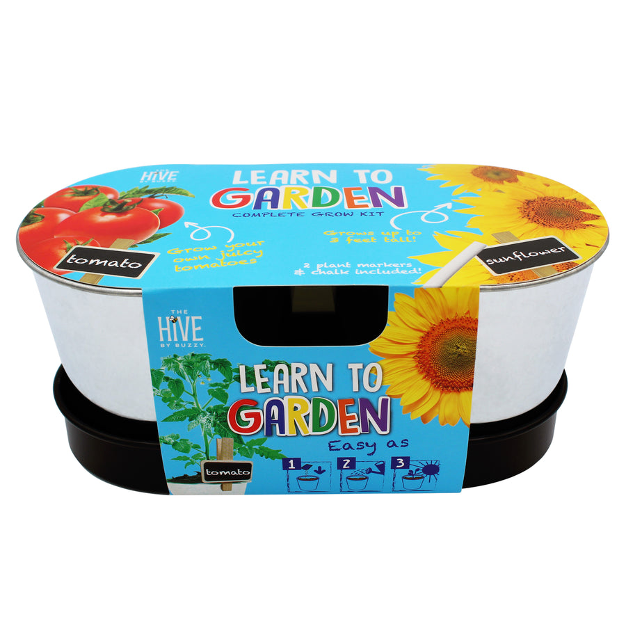 • Includes: 2 metal pots, 1 tray, 2 seed packets, 2 growing medium pellets, 2 plant markers, 1 chalk, easy step-by-step instructions